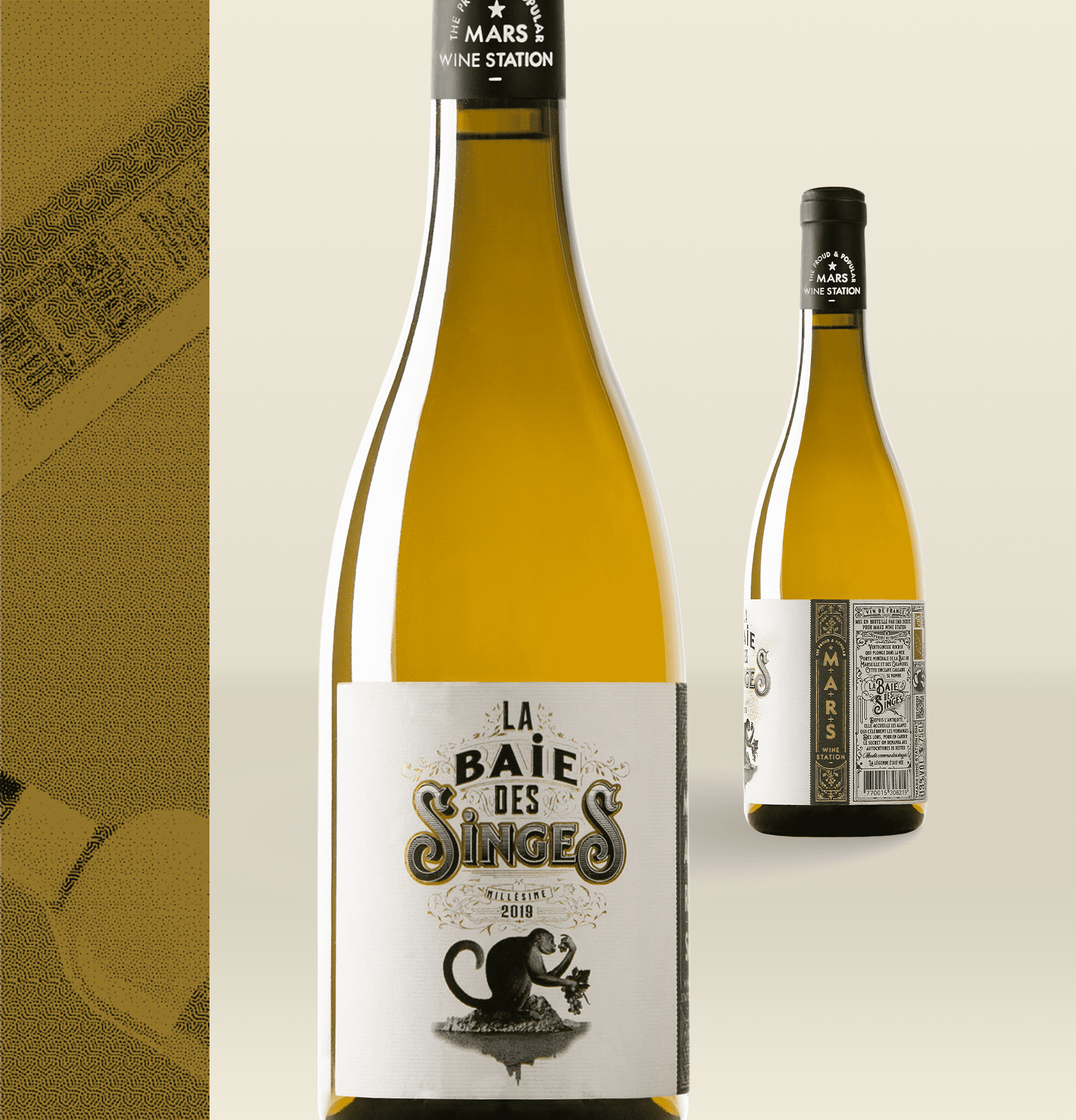 Petite crique bordée de cabanons, la Baie des Singes se situe aux Goudes face à l’île Maîre, vertigineux rocher qui marque l’entrée dans la baie de la cité phocéenne. Entourée des roches blanches caractéristiques du massif des calanques, cet endroit mythique de Marseille a inspiré Mars Wine Station ! pour cette gamme bio de haut niveau.